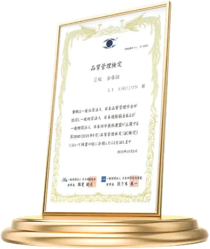 采购品质部采购品质部有着丰富的现场经验及专业知识,课员目前多人已获得了日本质量管理协会颁发的QC鉴定证书。