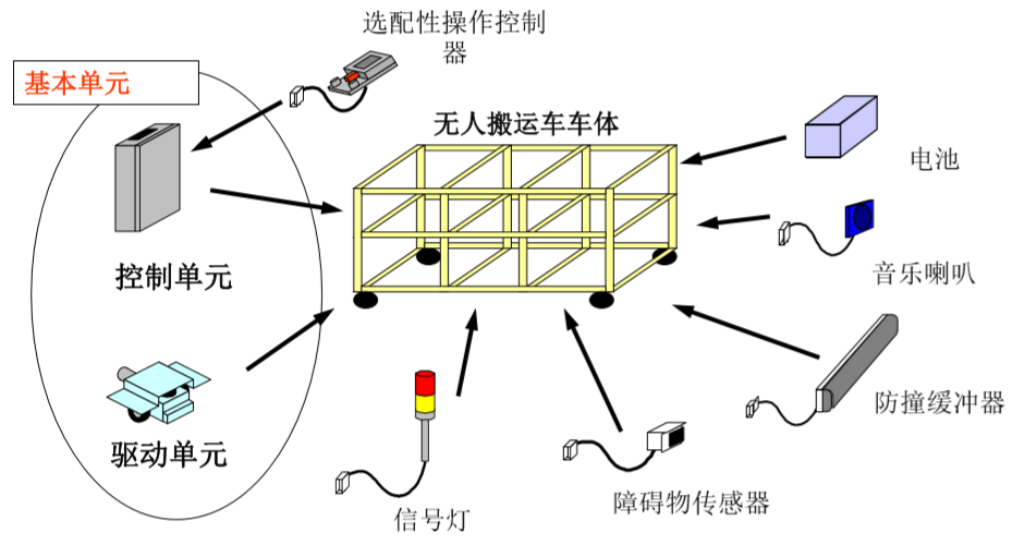 无人搬运车其主要部件(MCAT)的设计理念如下: