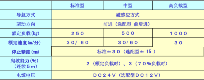 根据驱动单元搬运重量和搬运速度,分为3种车型。