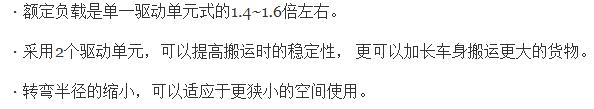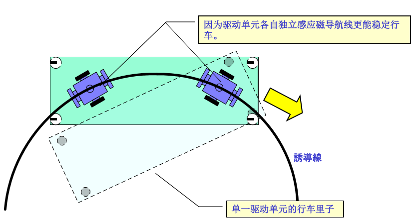 由于采用2个驱动单元,每个驱动单元后磁条传感器的追加,控制单元的特殊化,可以使搬运车做到完美的前后进。