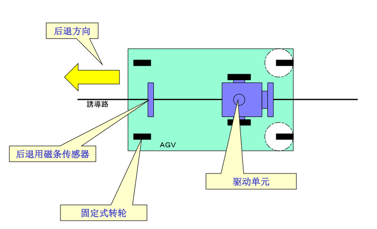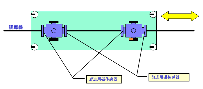 采用此种驱动方式的优点:无论是直行还是弯道都不会碾压感应磁条,以延长感应磁条的使用寿命。