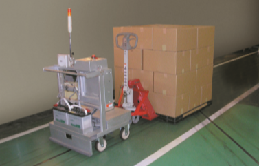 将物流中心入货的手推式台车分类搬运到出货场。自 动读取手推式台车上的商品条码,自动判别手推式台 车的目的地,然后牵引搬运到目的地。手推式台车的 连接由作业人员手动进行,分离为自动进行。