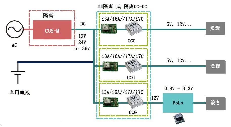前端大功率当输出电源,与后端DC-DC模块配合使用