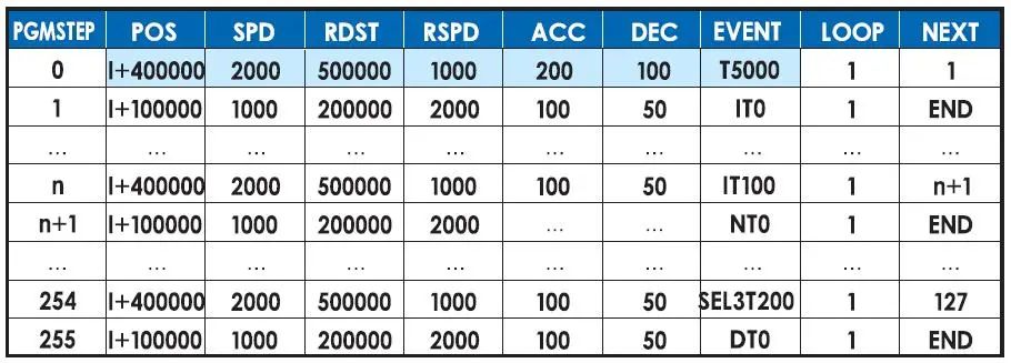 ●只需在程序表中输入位置、速度数据等即可设定动作模式