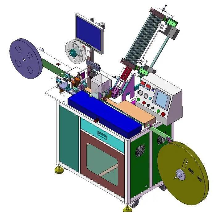 ●采用PLC作为核心控制;显示屏设计独特,液晶显示下单,模拟显示各控制点状态,能方便地设定与修改各种参数值,监控各种工作状态及其编带速度